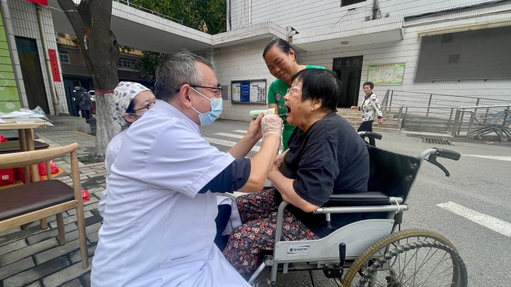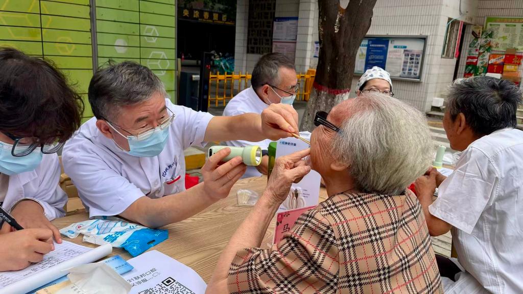 活動現(xiàn)場秋意爽朗,暖意融融。鄧邦蓮院長與馬振國、李剛、劉斌三位教授組成的專家團隊,憑借精湛醫(yī)術(shù)與豐富臨床經(jīng)驗,為每一位咨詢的老兵提供免費口腔健康檢查。他們耐心傾聽老兵訴求,細(xì)致檢查口腔狀況,針對牙齒松動、牙周疾病等老年常見口腔問題,逐一制定個性化診療建議與防治方案;醫(yī)護團隊還同步為有需求的老兵測量血壓,贈送包含牙膏、牙刷及口腔護理指南的“愛心健康禮包”,將貼心關(guān)懷落到實處。