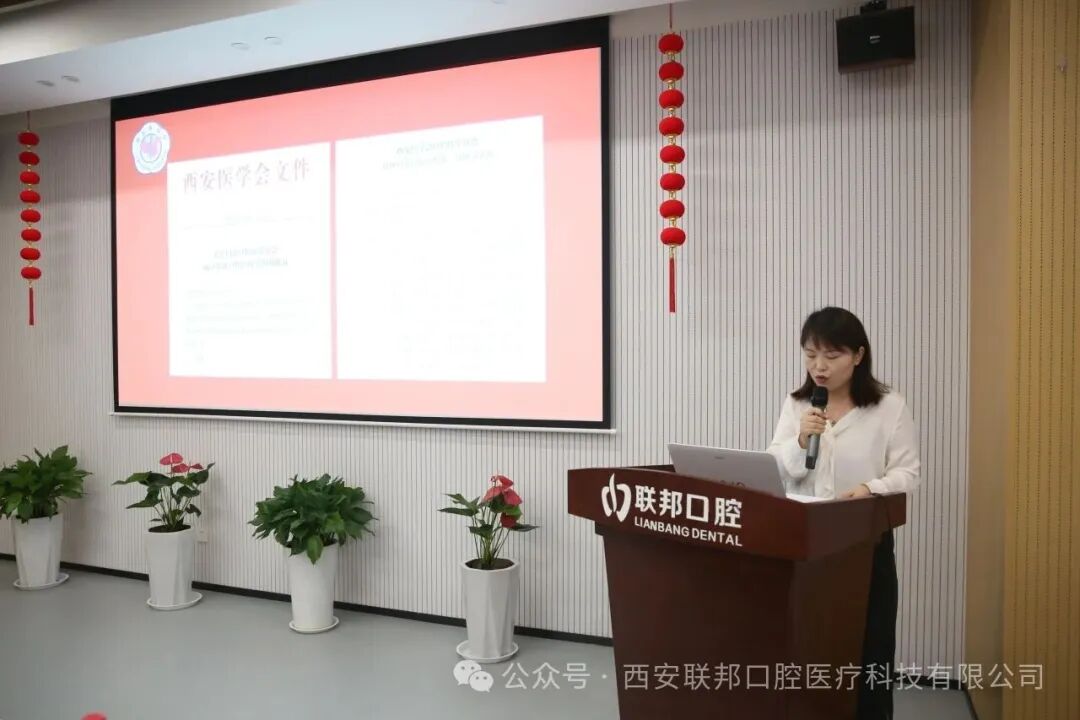 大會(huì)由西安醫(yī)學(xué)會(huì)張芳芳主持,宣讀了學(xué)組成立批復(fù)文件。鄧邦蓮院長(zhǎng)圍繞學(xué)組成立背景、宗旨目標(biāo)及未來規(guī)劃展開全面匯報(bào)。她指出,當(dāng)前西安市社區(qū)口腔醫(yī)療存在資源分布不均、基層診療水平亟待提升等痛點(diǎn),并明確提出學(xué)組將通過實(shí)施系列階段性舉措,著力推動(dòng)區(qū)域口腔醫(yī)療服務(wù)提質(zhì)升級(jí),助力全民口腔健康事業(yè)發(fā)展。